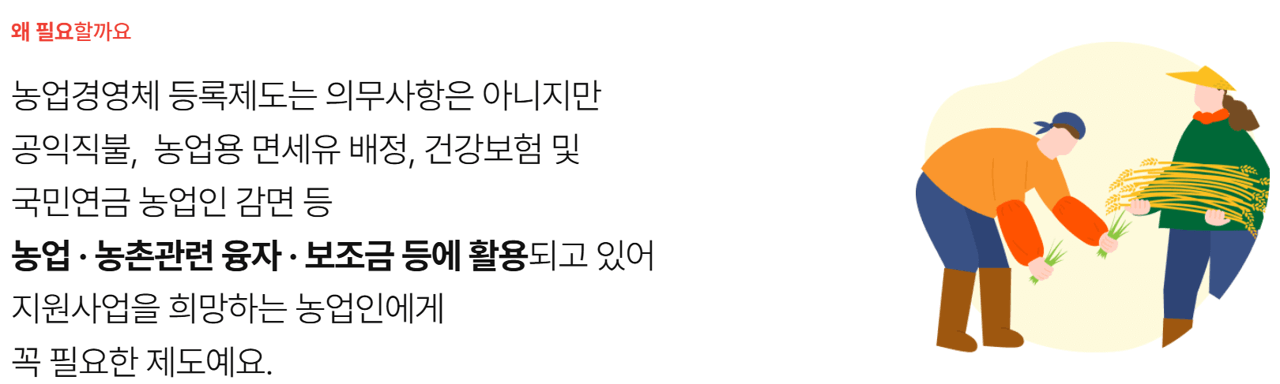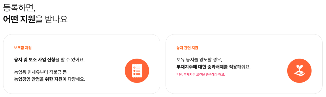 | 복지 혜택 | 건강보험료 및 국민연금 농업인 감면(최대 50%) |