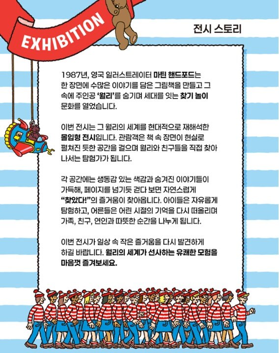 - 한국형 월리 등장: 광장시장 등 한국적인 배경 속에 숨어있는 월리를 찾는 재미는 이번 특별전만의 묘미입니다.