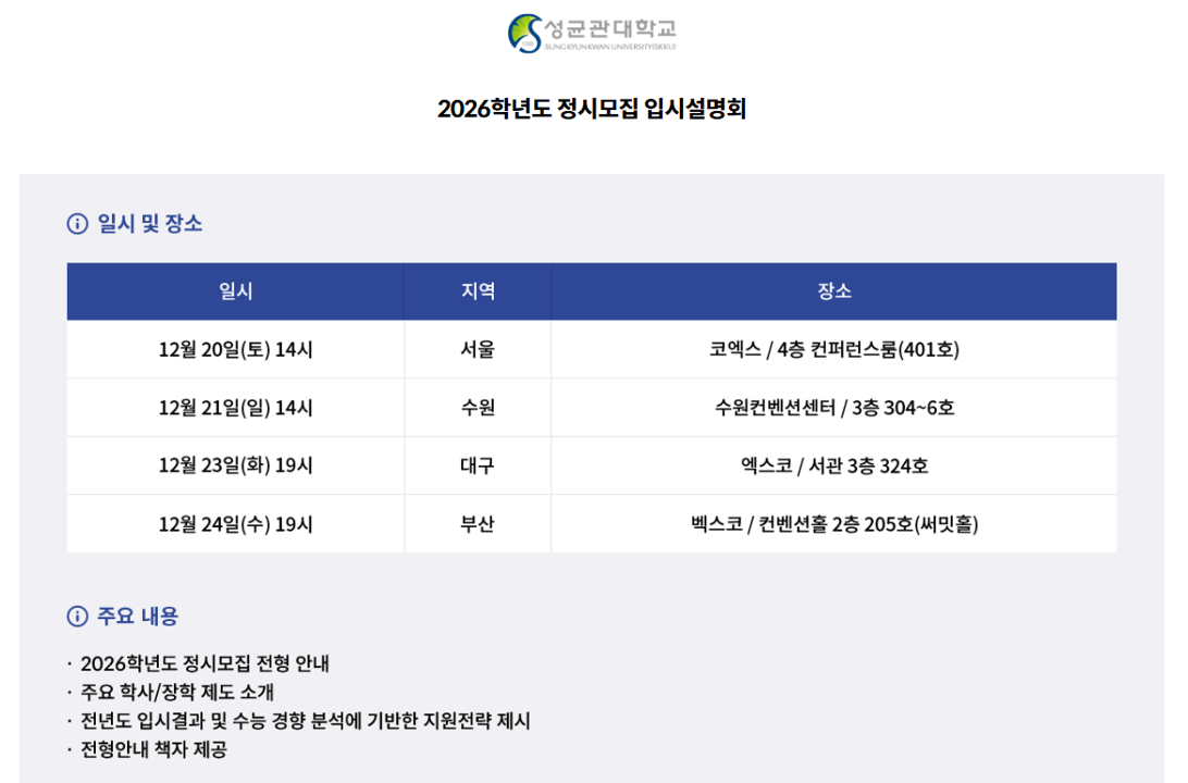 성균관대학교 정시 입학 설명회 / 온라인(전화) 상담 신청하기