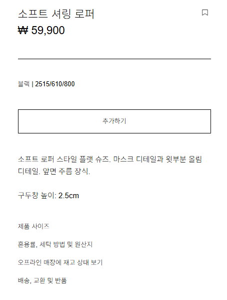 | 2515/610/800 | 소프트 셔링 로퍼 (신발) | 생로랑 스타일 로퍼. 굽 2.5cm. 유행 안 타고 오래 신을 디자인. |