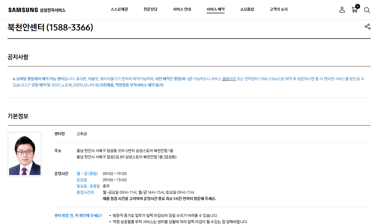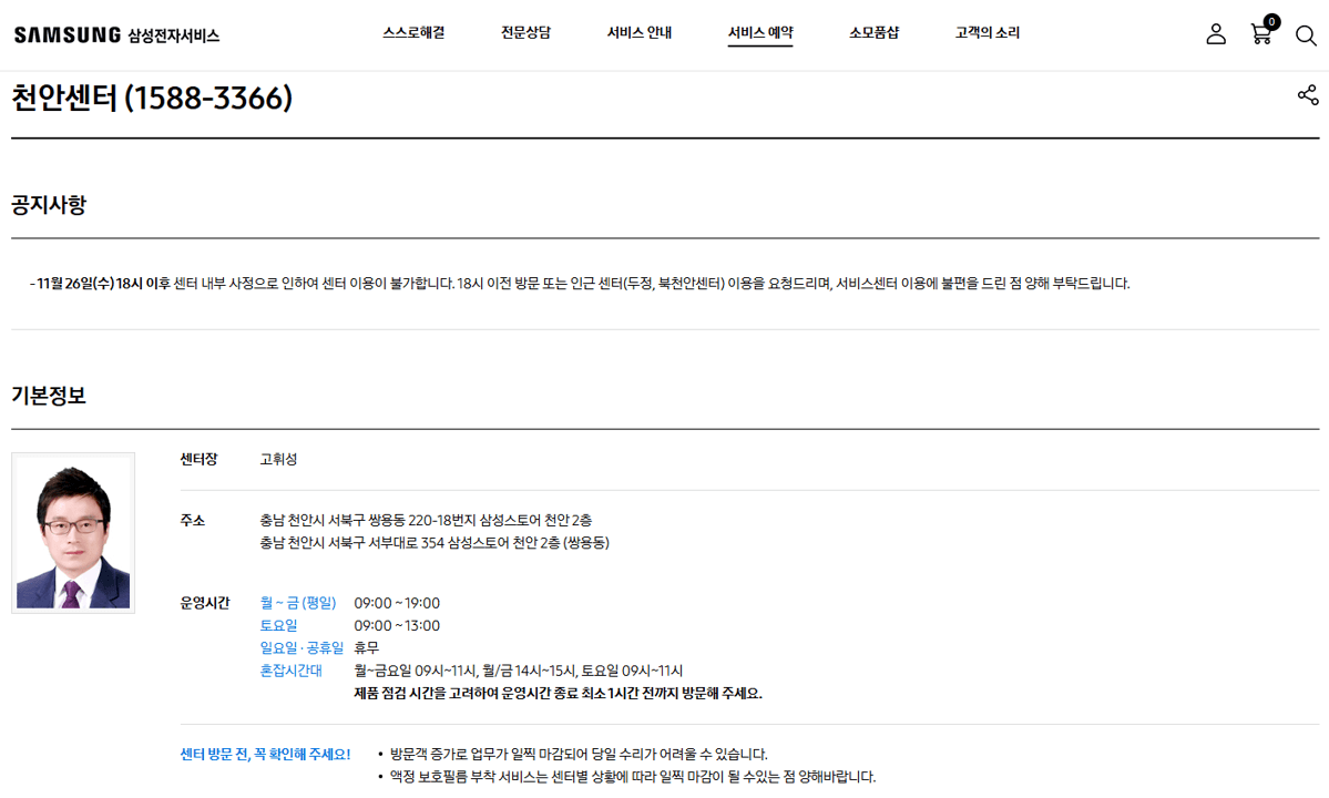 1. 천안 삼성전자서비스센터 위치 및 운영시간