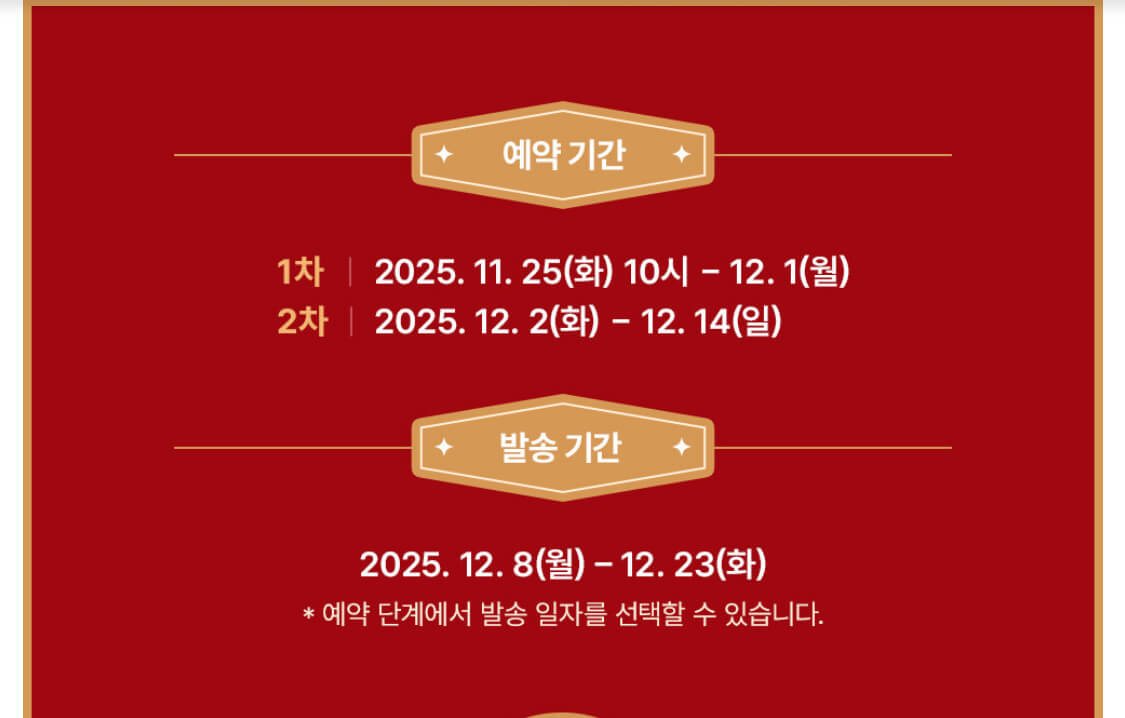 - 1차 예약 기간: 2025년 11월 25일(월) 오전 10시 ~ 12월 1일(일)