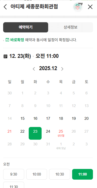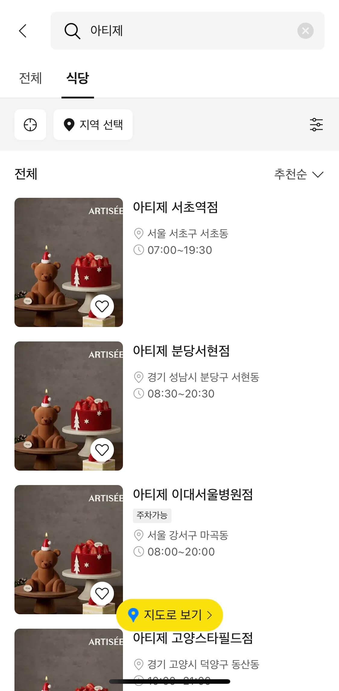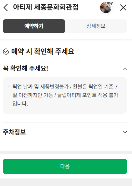 혹시 모르니 예약 전 아티제 공식 홈페이지에서 픽업 매장을 최종 확인하는 것이 가장 안전합니다.